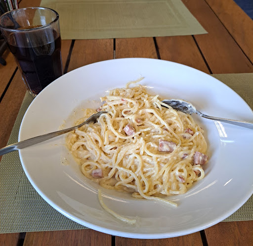 Das dritte mal war bei einer Einladung innerhalb der Familie. Das Essen war echt "unterirdisch" 😤 Die Champignons in der Rahmsoße (es glich eher wässriger, brauner Brühe) waren total matschig und verkocht. Ebenso wie die Gnocchi. Eher klumpige, matschige Masse ohne jeglichen Geschmack. Die Soße sollte Carbonara sein - war aber zu 80 % ausgeflocktes und gestocktes Ei.