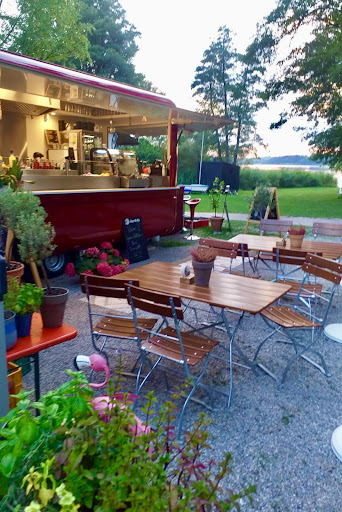 Essen sowie Getränke perfekt! Super gemütlich und einladend nach einer Fahrradtour, zum abschalten vom Alltag ein mit liebe gemachten Lillet wild Berry am See trinken oder einfach die letzten Sonnenstrahlen genießen! Nettes und freundliches Personal am Empfang sowie am Imbisswagen! Sehr Aufmerksam, man wird immer bedient, egal wieviel los ist, essen und Getränke werden schnell und mit viel liebe zum Detail zubereitet! Wechselnde Getränke und Speisekarte! Man wird immer überrascht!
