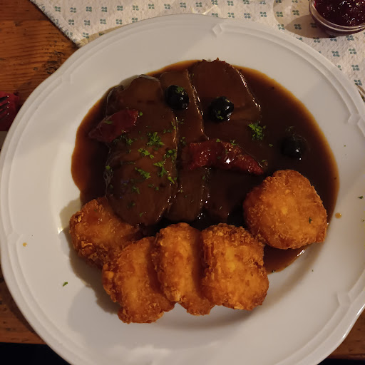 Read moreEin schöner Biergarten, gerade erst wieder eröffnet nach Lockdown. Als wir ankamen, spielte noch einige Zeit live Musik. Das fanden wir eine tolle Sache, weil es gut zum bayerischen Biergarten passt. Die Wartezeiten auf die Getränke und das Essen waren alles im Rahmen. Wir bekamen noch einen Tisch, obwohl schon einiges los war. Der Tisch und die Stühle standen auf der leicht abschüssigen Wiese schief, weshalb man die Tische nicht anders hingestellt hat, obwohl nach oben hin Platz war, entzieht sich meiner Kenntnis. Was das Essen betrifft, besteht noch Luft nach oben. Mein Schweinebraten (11,90 Euro) war in Ordnung aber nicht überragend, sehr wenig Soße, mit Fertigkrautsalat? Schade! Als Gasthaus sollte man den Anspruch haben, auf Fertigsalate und Fertigsoßen zu verzichten. Unsere Begleiter hatten beide Schnitzel mit Pommes (ohne Salat, 11,90 Euro), habe ich probiert, beides war in Ordnung. Das Schnitzel ist lt. Speisekarte in Butterschmalz herausgebraten, was man allerdings nicht schmeckte. Die Pommes hätten noch kurz gebraucht. Meine Partnerin hatte Reh mit Knödel in der Pfanne (15,90 Euro). War leider schon recht kalt, als es an den Tisch kam, mit zu wenig Soße, das Fleisch etwas hart, der Knödel etwas teigig. Soße wurde auf Nachfrage zügig nachgeliefert. Wir kochen selber gerne und gut und haben die Erwartung, dass wenn wir zum Essen gehen und gutes Geld dafür zahlen, auch eine gute Küche vorfinden. Im Ergebnis: Schöner Biergarten in einem schönen Dorf, beim Essen könnte man noch einiges verbessern, die Küche blieb unter unseren...