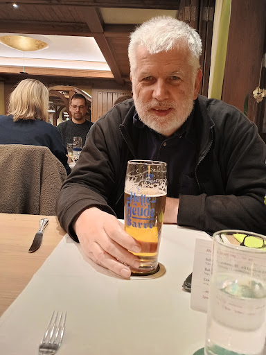 Read moreFreundliches Hotel bei dem ALLES stimmt! (besser als jedes große Kettenhotel) Sehen Sie, meine Frau und ich haben viele Hotels besucht. Aber wir haben gemerkt, dass es kein besseres Hotel als ein familiengeführtes deutsches Hotel gibt! Vor allem, wenn das Hotel seit über 125 Jahren von der gleichen Familie geführt wird, mittlerweile sogar in der 5. Generation! Diese Menschen sind stolz auf ihr Hotel und ruhen nicht, bis ALLES in Ordnung ist und sich ALLE Gäste wohlfühlen. In diesem Hotel fühlen Sie sich wie ein König, es ist wie „ein warmes Bad“. Wir haben hier zu Abend gegessen - und es war köstlich! Wir haben selten so gut gegessen :-) Auch das Frühstück, mit Saft und Kaffee und natürlich regionalen Produkten als Toppings, hat uns sehr gut geschmeckt. Wir waren auf einer Holzeinkaufstour und meine Frau und ich hoffen, in Zukunft noch viele Male hier übernachten zu können. Das Foto zeigt mich mit einem köstlichen Glas deutschen Biers – und das schmeckt in so einem traditionsreichen Hotel besonders gut! Grüße von...