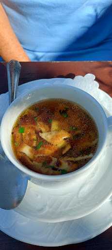 Wir haben mit einer hausgemachten Rinderkraftbrühe mit Pfannkuchen Streifen angefangen. Sehr lecker 😋. Als Hauptgang gab es für meine wunderschöne Frau, eine wirklich leckeres Rahmpfifferling Ragout mit Servietten Knödel und für mich einen gemischten Schweinsbraten mit Dunkelbiersauce, Semmelknödel und Sauerkraut. Als Beilage haben wir uns einen kleinen gemischten Salat gegönnt. Alle Speisen waren super. Die Bedienung war super. Das Bier war super. Einfach alles war super.