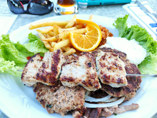 Der Türsteher empfing uns mit Einwortsätzen ohne Blickkontakt und hochgezogen Brauen, als ihm klar wurde, dass wir nicht reserviert hatten. Er erteilte uns die Gnade dennoch speisen zu dürfen. Während wir warteten, mussten wir erleben,wie er als Aufseher, eine Mutter barsch und unter fadenscheinigen Argumenten, nötigte ihr ca. 3-järiges Kind vom Brunnen zu holen. Hätte ich meine Kinder dabei gehabt, wäre dies der Moment gewesen den Ort sofort zu verlassen. Die Bestellung der Kellnerin lief förmlich ab. Da ich gerade eine Akkuladung benötigte, wollte ich um Strom bitten. Ich tat mich zum ersten mal in meinem Leben schwer damit, denn inzwischen war es unverkennbar, dass der Türsteher und Aufseher auch Chef ist. Ich wollte die junge Frau nicht in Verlegenheit bringen. Dennoch fragte ich und nach kurzem Zögern nahm ging sie mein Handy laden. Unser gewünschter Kaffe kam, lau in der Temperatur, lullig im Geschmack. Auch ohne gute Kaffeemaschine könnte man guten Kaffe machen. Quasi umgehend stand ein dürftiger Salat, der offensichtlich aus dem Eisschrank schon vor Stunden angerichtet war, auf dem Tisch. Eindeutig alles Fertigelemente aus dem Grosshandel. Hätte ich daheim besser haben können. Das Essen, welches ebenfalls verdächtig zügig folgte war sehr warm. Man könnte vielleicht an dieser Stelle dem Restaurant noch einen halben Stern geben, weil man sich definitiv nicht verbrennen konnte. Geschmacklich OK, eingedeutscht. Geschmack und Portionsgrösse zum Preis wird jedoch dieser halbe Punkt sofort wieder abgezogen. Danach begann das grosse Warten am vollen Tisch. Netter Weise durften wir dabei diese kleine Welt dort beobachten. Und somit einen Chef, der seine eigens selbstverschuldete Fehlbestellung seinen Kellnern und den Gesten zum Vorwurf machte. Erst beschuldigte er die Kellner, dann erklärte er, der Gast habe nicht deutlich gesprochen. Die Kellner/innen wirkten stoisch in ihren Handlungen als müssten sie die Strafe Gottes fürchten,wenn der Ablauf nicht klappt, während der Türsteher,Aufseher und Chef eine permanente Unruhe verbreitete. Als der Tisch dann endlich vom Chef, nun als Abräumer, abgedeckt wurde, versuchte ich freundlichen Kontakt aufzubauen. Und fragte, ob in Griechenland nicht eigentlich kyrillische Buchstaben verwendet werden. Er reagierte unglaublich überheblich - schroff und erklärte, die Griechen hätten schon immer lateinische Buchen gehabt. Ich war so irretiert, dass ich später noch einmal nachlas. Entweder er hatte keine Ahnung, wollte uns was Vormachen oder uns für dumm verkaufen. Warum werde ich nie erfahren aber ich fühlte mich verarscht. Wir bestellten dennoch einen Espresso, mit der Hoffnung der Kaffee war vielleicht nur so schlecht, weil in Griechenland Espresso üblich ist. Als der kam wurde jede Erwartung übertroffen. Geschmackliches Mittelmass und lau, also sehr lau. Wir baten um die Rechnung bei eine der jungen Kellnerin sie bot uns einen Ouzo an, betonte dabei, dass es nicht auf Rechnung sei. Dies war mir befremdlich. In anderen Griechischen Restaurants bekam ich bishehr sowohl vor, wie auch nach dem Essen ungefragt eine Auswahl an kleinen Alkoholitäten, mit der Möglichkeit des Ablehnens. Aber gut so geht es natürlich auch. Und daran würde ich so oder so nicht rummäkeln. Der Kassierer, natürlich der Chef, brachte die Rechnung, den Ouzo und eine Rose für mich. Er stellte uns das Getränk auf unsere Plätze und übergab mir die Rose , plötzlich sehr höflichen und freundlich. Natürlich war nur Barzahlung möglich, für uns kein Problem aber auf keinen Fall zeitgemäss. Ich habe selten Bargeld zum Glück aber mein Mann. Nach Zahlung der Rechnung verschwand der Herr des Hauses auf für uns inzwischen gewohnt ignorierende Weise. Der Ouzo war gut! Schön gekühlt, die wunderbaren kleinen Kristalle oben auf und nicht gepanscht. Dafür gibt es...