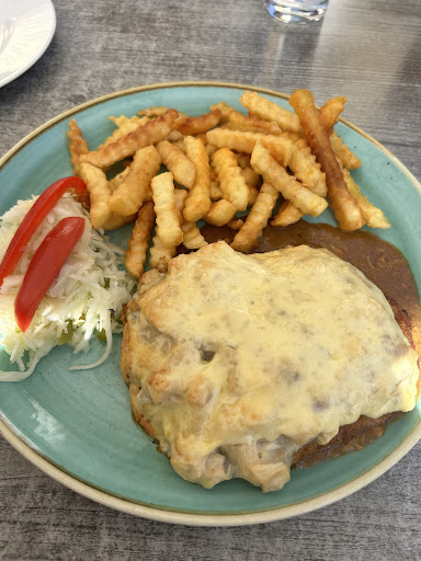Read moreWir hatten uns auf ein warmes Mittagessen gefreut. Der Service freundlich und kurz angebunden. Die Wartezeiten waren für die aufgegebene Bestellung angemessen. Die beiden Essen kamen dann auch. Das bestellte Schnitzel mit Rahmenchampignon und Pommes - die Sauce war gar nicht gewürzt. Dafür die Pommes um so mehr. Das Wildgulasch - es wurde scheinbar alles vom Wild verwertet - von zartem Fleisch über bissfest zu fast knorpelig - auch das gesamte Temperaturspektrum war dabei. Die Klöße, der Rotkohl und ein Teil des Wildgulasch waren warm. Leider war ein Teil des Fleisches ganz kalt ( Kühlschrank-Temperatur ). Wie das geht, wen alles in einem Topf lag? Auch die Teller waren nicht vorgewärmt, um das Essen länger warm zu halten. Also das Preis-/Leistungsverhältnis stimmt hier auf keinen Fall. Schade. Für die geforderten Preise muss das Speisenangebot deutlich...
