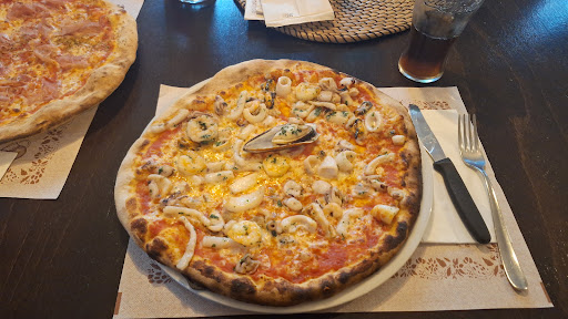 Read moreDas Restaurant war auf der Terrasse fast voll, zwei Tische waren reserviert. Es waren nur zwei Bedienungen vorhanden und es ging alles sehr schleppend voran. Wir mussten uns nach gefühlter Ewigkeit die Speisekarten selbst holen und bis wir unsere Bestellung aufgeben konnten, verstrich nochmals eine gefühlte Ewigkeit. Die Krönung aber war, dass wir unser zwei Pizzen erst nach ca. 1 Stunde erhalten haben, obwohl es an diesem Abend auch nur Pizzen und Salat zum Bestellen gab. Nudelgerichte oder Fleischgerichte gab es überhaupt nicht, vermutlich wegen Personalmangel in der Küche. Während unserer Wartezeit wurden allerdings von den Telefonbestellern munter die Pizzen aus dem Restaurant getragen und wir im Restaurant hatten das Nachsehen. Hier unsere Bitte: als allererstes werden die Gäste im Restaurant mit dem Essen versorgt und erst dann die Abholer. Sollte die Kapazität im Ofen nicht ausreichen, dann eben den Abholdienst für diesen Abend ganz einstellen. Wir hatten dies am Ende auch dem Personal mitgeteilt, dass uns die Pizzen sehr gut geschmeckt haben, aber wir mit der Wartezeit überhaupt nicht einverstanden waren. Es kam eine Entschuldigung, aber sonst...