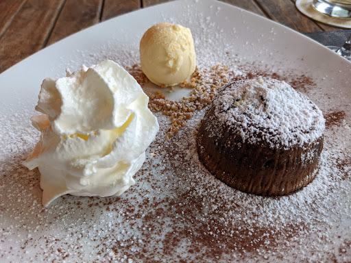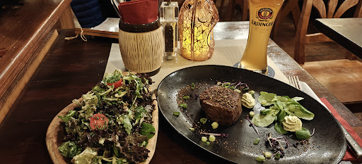 Read moreIch war heute zum Rinderfilet essen dort, nachdem mir das gewollt-und-nicht-gekonnte-Zwangs-Veggi im Kurhotel zu den Ohren raus hing. Meine Motivation war, ich wollte ein Steak, notfalls auch ein mittelmäßiges. So weit so gut. Was soll ich sagen. Ich habe schon ein paar Semester auf dem Buckel und schon einige sehr gute Steaks und Filets gegessen. Das ich jedoch ausgerechnet in diesem, im Winter scheintoten Kur-Viertel, das bisher mit Abstand (!) beste Jungbullen-Filet kredenzt bekommen habe, dass jemals meinen Gaumen passiert hat, hätte ich im Leben nicht erwartet! Chapeau an die Küche. Das war wirklich vom allerfeinsten on point Medium, butter-zart. In einem Anflug von Wahnsinn und auf die Gefahr hin, das gerade gebotene mit einem schlechten Dessert zu ruinieren, habe ich zum Dessert noch das warme Schoko-Kücherl mit Vanilleeis und Sahne bestellt. Und wieder wurde ich nicht enttäuscht. In den drei einzig relevanten Kategorien Fluffigkeit, Schokoladigkeit und Cremigkeit war das Schoko-Kücherl eine 11/10. Last euch von den wenigen schlechten Bewertungen nicht irritieren. Ich lehne mich aus dem Fenster und behaupte, hier bekommt ihr das beste Rinderfilet in...
