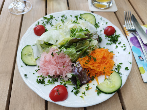 Read moreAmbiente im Hof ganz hübsch. Die Servicekraft hatte offenbar ein Problem damit, uns freiwillig eine Getränkekarte zu geben [warum auch immer, war nichts besonderes]. Schnitzel waren riesengroß und preislich absolut in Ordnung. Aber die Soßen machen alles kaputt. Schmeckte irgendwie nach versalzener Fertigsoße mit einer großen Portion Pilze aus dem Glas oder aus der Dose. Hat leider das komplette Schnitzel durchweicht. Beilagensalat sehr gut. Insgesamt hat das Lokal noch viel Potential, mit kleinen Änderungen richtig...