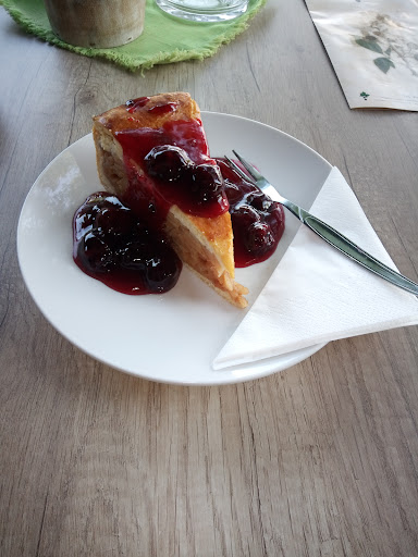 Der Kuchen mit meinem extra Wunsch hat super geschmeckt. Warme Brombeeren Sauce. War Super Lecker der Apfelkuchen.