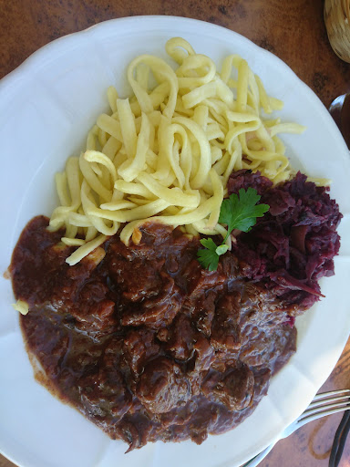 Für Wild- Gericht Liebhaber: Auf der Karte gibt es ein Wildgericht zum Essen. "Wildragout mit Apfelrotkohl und Spätzle."