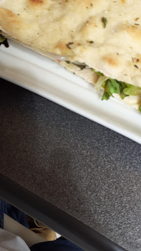 Es ist einfach aber richtig schmackhaft. Im Grunde genommen ist es ein Pizzaboden der halbiert und mit Salami frischem Gemüse Käse und belegt wurde vorher mit der extrem leckeren Soße bestrichen wird. Es wird dann nochmal erhitzt. Man richtig genial. Von außen ist der Boden mit Olivenöl bestrichen worden, dann kommen Thymian und Salz drauf.