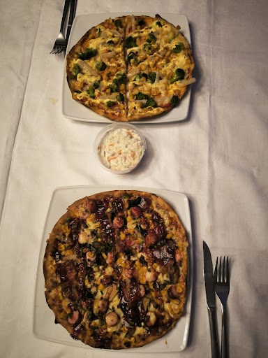 Pizza Venedig komplett geschmacklos (wie festes Wasser) Tomatenscheiben so dick wie eine Bunkerwand,Pesto (der eine Grundzutat der Pizza war) fehlte gänzlich, käse war spärlicher vorhanden als Menschenrechte in Saudi-Arabien und der Teig trotz extra bitte des extra Backens immernoch Recht wabbelig.