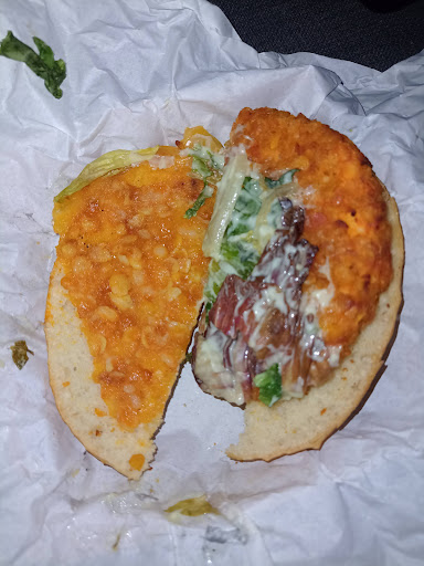 Sesambrötchen bestellt, Brioch bekommen, Crispy Chicken bestellt den Cheese Chicken bekommen. Gurken fehlen auch! Wenn eine Kuh 50 Jahre alt werden könnte,würde ich mir den daraus resultierten Käse genauso wie auf dem Burger vorstellen.Das Burgerpatty war etwas aufgeweicht (Crispy*) und schmeckt wie Opa unterm Anzug. Weniger lustig fanden wir aber die Soße darauf , da sie sehr säuerlich geschmeckt hat, anmerken möchte ich auch das kein Ketchup o.ä drauf war und die WEIẞE soße nach Ketchup schmeckte.