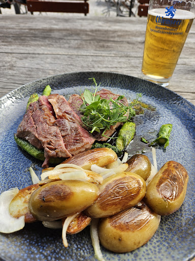 Read moreBad Heilbrunn - Gasthaus RamsAu... Schon mal gehört? Wenn nicht - dann geht es Dir wie mir. Wenn ja - dann weißt Du bestimmt, wie die Bewertung ausgeht! Am längsten Tag im Jahr 2023 fand dort eine Hochzeit statt. Und ich war sofort mittendrin. Ankommen.Parken.Feiern. Die freie Trauung fand in einem toll hergerichteten Steinhaus statt. Einfache Holzbänke für die Gäste, aber passend zum Kaminfeuer, mit Fellen belegt. Dann zum Anstoßen in den Hof des Anwesens. Bier, Wein, Sekt oder auch was ohne Alkohol - in den passenden Gläsern serviert. Auch kleine Snacks gab es an den einzelnen Stationen. Bestückt mit sehr freundlichem und hilfsbereitem Personal. Das Wetter hat an diesem Tag, Ende Oktober, nochmal sein Hoch-Zeits-Gesicht aufgelegt. Oder ist es dort einfach immer Sooo. Dann in die offene Scheune zum Kaffee und Kuchen. Ebenso liebevoll herausgeputzt wie das Steinhaus. Dann kam aber der Höhepunkt. Einzug der Hochzeitsgesellschaft in den früheren Kuhstall. Umgebaut zu einer Partylocation. Auch hier - hat alles gepasst. Die Sitznischen für die vielen Gäste. Holzbänke, stimmungsvolles Licht und in der Mitte einen "Catwalk". Für die Kinder und auch später für die Partypeople - Aufenthaltsort Nummer 1. Dann das 3-Gänge-Menü. Vom Feinsten. Für mich hatte es schon Sternniveau. Rote Bete Carpaccio mit Ziegenkäse, Fleisch vom Alpenrind mit Kartoffelrösti und und und. Das war "Meins". Danke hier dem - der das ausgesucht und bezahlt hat. Eine tolle Idee war - es gab neben den Fleischspeisen natürlich auch noch Fisch und vegetarisch - Cetons an die Gäste auszugeben. Farbe rot z.B. für Fleisch usw. Man hat sich schon beim Aussuchen des Cetons und diesen dann in die Hand zu nehmen - und dann der Bedienung zu geben - gefühlt wie ein Gewinner. Tolles Brautpaar, tolle Gäste, tolles Essen, tolles Personal und viele unvergessliche Stunden im und um den Gasthof RamsAu...