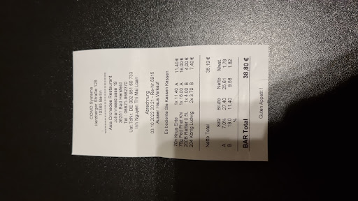 Read moreLeider war ein Herd kaputt und somit dauerte es über 1 Stunde mit dem Essen. Ok das kann passieren, jedoch wurde es auch nicht besser mit den Getränken. Das Zauberwort hier ist "Entschleunigung". Voller Erwartung kam dann auch das Essen... nur nicht so wie beschrieben auf der Karte. Jeder kleinere Imbiss hätte besser abgeliefert, und leider sind auch die Soßen aus... also wer mit Soße will muss auch auf der Karte prüfen ob dort Soße steht. Geschmacklich war es nichts, die Bar war voller Müll und dreckigen Gläsern und auch ein einfaches Bier wollte nicht so recht gelingen.Total absurd und unverständlich ist die Möglichkeit der Bezahlung, nur Bar kein EC weil das ja 1000€ kostet und jeden Monat auch noch. Einen Glückskeks gab es auch nicht, kann ich verstehen wenn man alles Glück der Welt selbst braucht. Der Griff der Eingangstür wackelt und man hat Angst die Tür von innen zu öffnen. Baustellencharme auf ganzer Linie und langwieriger Service. Kurz und knapp NIE WIEDER! Eine...