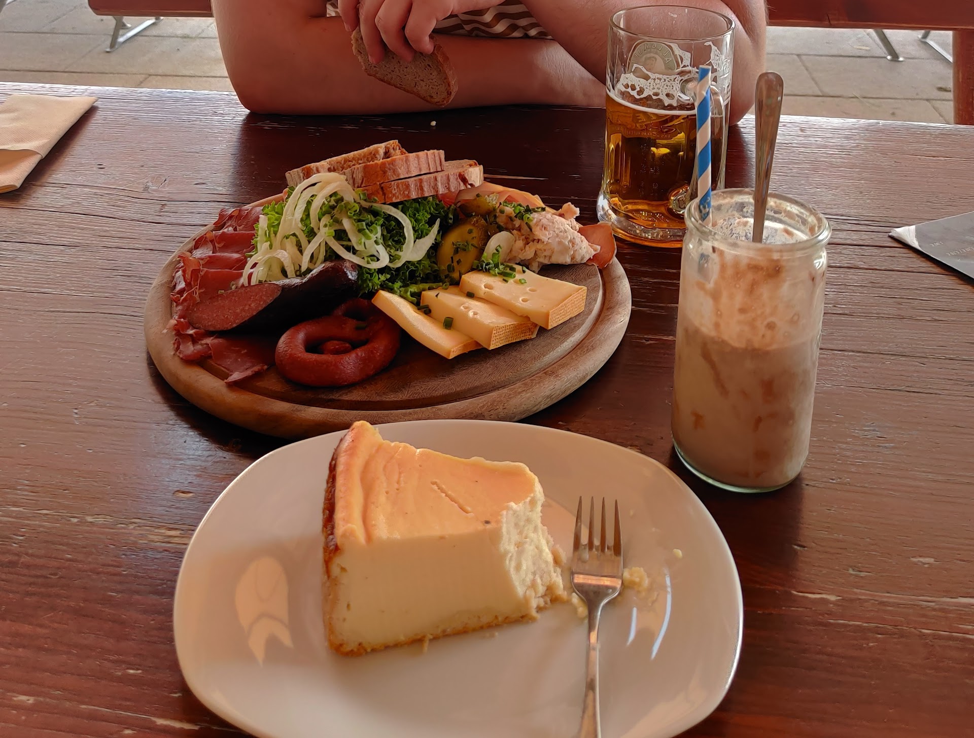 When you finally reach the café, it feels like a reward. The views are stunning — rolling hills, grapevines, and the Alps in the distance. The café itself is cozy and rustic, with a laid-back, friendly vibe. We had coffee and homemade cake on the terrace, soaking in the sun and the sound of cowbells in the valley. It’s the kind of place where time slows down.