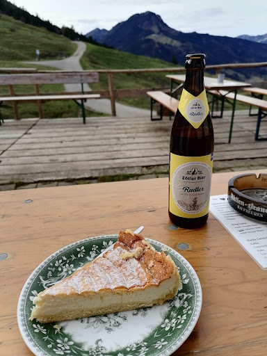 Nach einer langen Wanderung freuten wir uns, dass die Unt. Ochsenalpe geöffnet hatte und eine phantastische Aussicht bot. Die "freundliche Selbstbedienung" haben wir sofort genutzt 😉 und wurden prompt mit Espresso und Cappuccino bedient, auch ein warmes Wasser bekam ich umgehend. Der ebenso bestellte Kaiserschmarrn sollte gebracht werden. Nach ca 10 Minuten kam dieser dann auch. Unsere Freude darauf, wich augenblicklich Sprachlosigkeit und Enttäuschung. Für 9 Euro (was wir erst als "günstig" werteten) bekamen wir eine Handvoll Kaiserschmarrn auf einem Dessertteller mit einem Schälchen Apfelmus. Das Ganze lieblos präsentiert. Wenn der Schmarrn jetzt wenigstens göttlich geschmeckt hätte, wäre das Entsetzen ob der Menge/Preis evtl relativiert worden. Aber so!!! Ich bin viel in den Bergen unterwegs, hab einiges erlebt, aber das heute war Prädikat"unverschämt"! Hat man es in Oberjoch nicht nehr nötig? Wie schade! Gerne würde ich ein Bild hochladen von dem Schmarrn. Weiß nur nicht wie! Eine enttäuschte und traurige ...