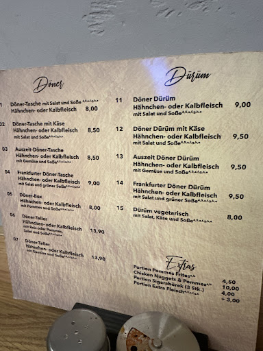 Habe Dürüm-Döner bestellt. Fladenbrot wurde nicht mal aufgewärmt und war halb roh. Fleisch war nicht das beste. Wenn man Hunger hat, ist es ok. Gemüse war ziemlich frisch auch zu später Stunde. Wollte extra Fetakäse und diese kleinen grünen Peperoni... Bekam die dünste Scheibe Käse, die ich je gesehen habe... Habe drum gebeten den Stiel von den Peperoni zu entfernen. Diese Bitte wurde gekonnt ignoriert.