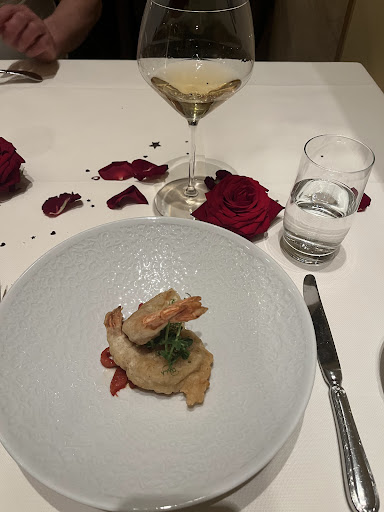We visited this old bank turned restaurant on a Saturday evening and had one of the most memorable dining experiences for our anniversary. Reservations are recommended. The service of the staff and their attentiveness to our needs was unmatched by any other fine dining experience. The menu options are all appealing and I don't think there is any wrong choice. The wine the waiter brought us was especially good and we bought the bottle. We had the red beet carpaccio with Buffalo mozzarella appetizer it was elegant and tasty with every bite. We were brought a small complimentary gnocci that was fried and pleasantly light with full flavor. The entree we decided on was the honey and parmesan Iberico pork chops. This delightful cut of meat was prepared to perfection, leaving every taste bud dancing with satisfaction. For dessert you cannot go wrong, but we chose the creme brulé and some grappa with an excellent cup of Italian coffee. The fish of the day is one I will try on our next visit. For the quality and service of this fine establishment, the prices are extremely reasonable. My highest recommendation to visit this place if you are in Bad Homburg, or even from the Frankfurt or Wiesbaden surrounding area (25 mins from Wiesbaden) and looking for a fine dining experience. Great work La...