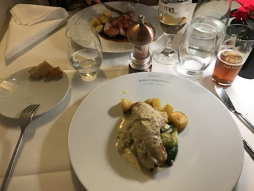 Read moreSchon seit Monaten hatten wir uns vorgenommen das Restaurant von Mario Fiorentino mitten in Bad Homburg zu besuchen. Vorab; Wir hätten schon viel eher hingehen sollen. Unser erster Besuch zum Mittagstisch hat uns absolut überzeugt. Meine Frau wählte Menue 1 mit dem Hauptgericht "Fischduett" und ich Menue 2 "Kalbsbällchen" mit gerösteten Zwiebeln und Rosmarinkartoffeln sowie frischem, gedünsteten Gemüse. Ich will´s kurz machen: Die Speisen waren sehr wohlschmeckend und Alles weitere ebenfalls nahezu perfekt (!) inkl. dem aufmerksamen, gut geschulten und korrekten Service, dem gepflegt eingedeckten Tisch mit geschmackvoll gewähltem Geschirr und Besteck, den außerordendlich schön angerichteten Speisen (Gruss und Anerkennung an die Küche für die Gesamtleistung!) sowie dem Preis-/Leistungsverhältnis, auch für ein gut gezapftes Veltins. - Einzig erschließst sich mir nicht, warum ein offener Grauburgunder (Pinot Grigio 0,2 ltr.) 9.00 Euro (!) kosten muss? - Fazit; In Kürze werden wir das Lokal zum Mittag mit Freunden und ganz sicher häufiger besuchen sowie weiter empfehlen. Wir gehen davon aus, dass sich diese tolle Erfahrung in Zukunft bestätigt.