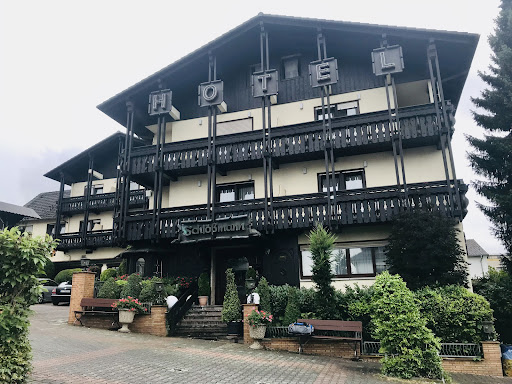 Gegen ein etwas in die Jahre gekommenes Hotel, ist absolut nichts einzuwenden. Wir hatten einen kurz entschlossen Kurzurlaub gebucht von Freitag bis Sonntag. Nach dem schnellen und ebenso unherzlichem einchecken sind, wir dann auf unser Zimmer gegangen. Ja “alt“ aber sehr gemütlich. Bis jetzt war der Empfang das schlechteste von allem. Wir haben uns dann noch ein in der Umgebung umgesehen. Und noch ein paar Dinge für die Zeit auf dem Zimmer besorgt. Zurück auf dem Zimmer einen Kühlschrank entdeckt somit hatten wir auch gekühlte Getränke auf dem Zimmer. Zum Zimmer selbst alles einfach und zweckmäßig. Wir hatten einen kleinen Balkon mit dabei, auf dem man in aller Ruhe den Sonnenuntergang genießen konnte. Aber warum nur ein Stern? Hier ist der Chef selbst für verantwortlich. Zum Abendessen sind wir in das dazugehörige Restaurant des Hauses gegangen. Es waren einige Tische besetzt aber das Lokal war noch lange nicht an denn Grenzen seiner Sitzplatz Kapazität angelangt. Nachdem wir Platz genommen hatten wurden wir auch sehr schnell von einer sehr netten Bedienung begrüßt. Diese führte uns dann auch durch den Abend. Das Speisen Angebot auf der Karte ist reichlich und das was wir davon bestellt hatten war sehr lecker. Eine etwas größere Gesellschaft sorgte hier und da für ein wenig Panik Stimmung bei der Bedienung. Zur Unterstützung hatte Sie einen älteren Herren (77) Jahre jung und nach aller Wahrscheinlichkeit der Senior Chef des Hauses. Dieser Herr viel schon sehr unangenehm auf da er verschiedene Bestellungen von Gästen nicht für gut heißen wollte. Da der Sohn also der Junior Chef alleine in der Küche sei und schon am Rad drehen würde. Wenn ich ein Restaurant mit Hotelbetrieb habe, des weiteren Räumlichkeiten die sich gerade zu Aufdrängen für größere Gesellschaften hier zu Feiern. Dann kann ich nicht rum jammern wenn dann auch mal ein paar Gäste mehr da sind. Wenn dann noch ala Carte angeboten wird muss die Küche das auch reibungslos bewältigen. Wenn dann noch später die Weizenbier Sorten nach und nach ausgehen. Sowie die Bedienung gegen 22:30 Uhr die Rechnung verlangt weil Sie morgen früh auch das Frühstück ausrichten muss und Irgendwann auch mal Schlafen muss hört mein Verständnis für das Hotel Schlößmann komplett auf. Wie gesagt wir hatten zum Glück einen Kühlschrank auf dem Zimmer und unser Eigenes Bier und Wein dabei somit verbrachten wir dann den rest des Abends auf unserem Zimmer. Das Frühstück an den zwei folgenden Tagen war geschmacklich sehr lecker und die auswahl war auch ausreichend. Aber auch hier ließ die Organisation zu wünschen übrig. Der zweite Abend war dann eine Vollkatastrophe, die Bedienung, die wie mittlerweile herausgefunden, das Zimmermädchen war, hatte zu recht frei. Somit blieb nur noch der ältere Herr übrig, die Bewirtung der Gäste zu übernehmen. Das beste zum Schluss jetzt stellte sich auch noch heraus das der gute Mann faßt Taub war. Des weiteren wurden wir regelrecht dazu genötigt Vorspeise, Hauptgang und Nachspeise sofort zu bestellen und nicht nach und nach wie ich als Gast mir das wünsche. Wieder die selbe Laier der Sohn ist alleine in der Küche und es kommt noch eine größere Gesellschaft am Abend.