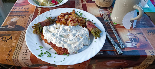 Read moreHier kehrten wir zum Abendessen ein, da unser eigentliches Ziel (mal wieder) geschlossen hatte. Zig mal hier vorbeigefahren, auch oft die stets gut gefüllte Terrasse wahrgenommen, aber irgendwie doch erst die Empfehlung aus zweiter Hand benötigt, um uns hier aufs leckerste die Bäuche zu füllen. Reserviert hatten wir natürlich nicht, wollten ja wonders hin, aber trotzdem fix freundlich einen Tisch bekommen, samt Speisekarte. Wir hatten einen "blonden Engel", das Schnitzel mit Sauce Hollandaise, Fritten und Salat und das hessische Schmandschnitzel, mit Bratkartoffeln und Speckbohnen. Die Portionen waren absolut sättigend, schmackhaft angerichtet und wirklich sehr lecker. Es gab neben den Schnitzeln noch einiges Andere zur Auswahl, auch von den Getränken her und wirklich alles zum guten Preis. 2 Schnitzel mit 2 Getränken für um die 50€ ist incl. "Mährchensteuer àla Olaf" richtig gut. Fazit: Durch einen Stups des Zufalls entdeckten wir ein günstiges und gutes Restaurant , mit familiärem Flair, das zum Wiederkommen einlädt. Machen...