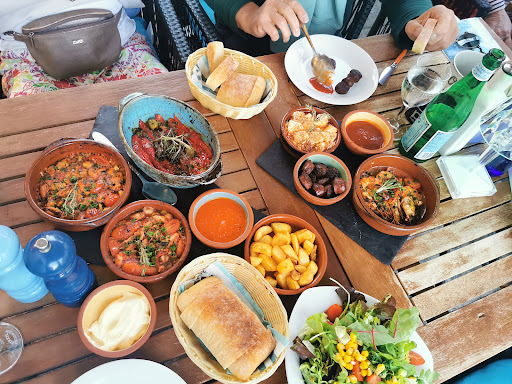 Wir waren gegen 18 Uhr abends dort, hatten glücklicherweise noch einen Tisch für und drei draußen bekommem und hatten sechs Tapas sowie einen Salat bestellt. Die Garnelen kamen ohne Bestellung auf den Tisch. Wir hatten Ziegenkäse, Oktopus, Wurst, Paprika, Kartoffeln und Miesmuscheln bestellt. Alles davon war gut bis auf die Garnelen und den Oktopus, da es wohl keine Frischware war und etwas roch. Der Oktopus war gummimässig und nicht wie angekündigt weich und zart im Biss. Die Kellnerin wollte uns dies wohl einfach nur verkaufen. Es gab Ciabatta Brot, was jedoch kalt war und gummimässig schmeckte, war wohl aus der Tüte. Wir mussten eine ganze Weile warten bis das Essen endlich kam. Auf die Rechnung warteten wir mehr als eine halbe Stunde, trotz mehrmaliger Nachfrage. Inzwischen war es schon kalt und ungemütlich, eine Zumutung die Gäste so lange warten zu lassen. Wir wollten drinnen zahlen, wurden aber auch aufs Warten vertröstet. Zu den Toiletten muss man erst über eine hohe Stufe und schweraufgehende Tür, dann wird man durch einen langen Gang geleitet mit Treppen hoch und runter, weiter durch einen Innenhof bis man dann vor einer Unisextoilette steht, eine kleine Odyssee, nicht barrierefrei. Die Lage ist schön direkt in der Fußgängerzone, jedoch riecht die Luft leicht nach Gully...der in der Nähe ist. Wlan gab es nicht, man konnte sich aber mit dem öffentlichen Bayern WLAN verbinden. Insgesamt gerade so ok, jedoch im Service und in der Speisenqualität stark...