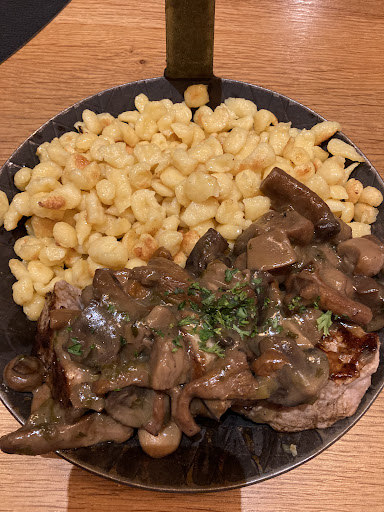 Meine Frau und ich kamen heute gegen 18:00 Uhr schon ziemlich hungrig im Restaurant an, und fragten nach einem Tisch für zwei Personen, wir verneinten eine Reservierung, (vermutlich) der Oberkellner (der einzige Mann mit Krawatte) zögerte kurz und wies uns einen Tisch zu und sagte, dass heute viel los, einen anderen Tisch könne er uns nicht geben, es war erkennbar, dass er uns nicht wegschicken wollte. Wir setzen uns hin, ich bestellte einen Eistee, meine Frau einen Tee, den ich kaum aussprechen, geschweige denn schreiben kann, außerdem bestellten wir ein Kalbsschnitzel, was sehr lecker war und das Angussteak, was ebenfalls sehr lecker war. Der Kellner brachte meiner Frau den falschen Tee, nachdem er darauf aufmerksam gemacht wurde, involvierte er meine Frau persönlich bei der Auswahl des richtigen Tees. Insgesamt warteten wir seit Ankunft im Restaurant über eine Stunde auf unser Essen, was mich wütend machte ("hangry"). Ich teilte dem Oberkellner mit, dass ich erwarten würde, dass sich das in der Rechnung bemerkbar mache, der Oberkellner entschuldigte sich zunächst, verwies auf das hohe Gastaufkommen und wollte uns nicht entgegenkommen. Ich legte nach, dass ich es nicht in Ordnung fände, so lange auf das Essen warten zu müssen und dass ich bei dieser langen Wartezeit lieber woanders hingegangen wäre. Der Oberkellner machte weiterhin keine konkreten Zugeständnisse, woraufhin ich sagte, dass wir sehen würden, was auf der Rechnungen stehen würde. Daraufhin sagte er - mittlerweile ebenfalls verärgert - dass wir das Essen nicht zahlen bräuchten, lediglich die Getränke. Ich meldete kurz zurück, dass das nicht nötig sei. Meine Frau und ich - mit vor Aufregung zitternden Händen - aßen das sehr leckere Essen. Als der Kellner wieder vorbeikam, der uns auch den Tee brachte, fragte ich nach der Rechnung, ob mit Karte gezahlt und unter diesen Umständen auch Trinkgeld gegeben werden könne, was der Kellner bejahte. Der Oberkellner kam wenige Minuten später zu uns, entschuldigte sich erneut und sagte, dass es seiner Meinung nach impliziert gewesen sei, dass wir auf unser Essen länger würden warten müssen, da der Laden ja voll gewesen sei und gab zu, dass er es aber nicht direkt gesagt habe. Wir einigten uns darauf, dass wir nur die Getränke nicht zahlen würden. Er liebe seinen Job, sagte er uns. Er bat uns darum noch fünf Minuten zu warten, da wir noch eine Überraschung bekämen. Wir bedankten uns und warten. Es waren zwei Dessertteller mit einer Kugel Eis, Sahne, Früchten und einem warmen Schokoladen Kuchen ähnlichen Dessert. Nachdem wir gezahlt hatten, und sich der "Tee Kellner" auch nochmal entschuldigt hatte, ging ich nochmal auf den Oberkellner zu, der sich nochmal entschuldigte und uns einen schönen Abend wünschte und sinngemäß sagte, dass er nun auch zufrieden sei, weil wir zufrieden seien und streckte mir seine Hand entgegen, die ich sehr gerne schüttelte. Der Oberkellner hat mich sehr beeindruckt damit, dass er sich ernsthaft entschuldigte und eine angenehme Lösung vorschlug. Sehr gerne wieder! Wenn sich der Oberkellner dazu äußern möchte: Dachten Sie, dass wir gar nichts für das Essen zahlen wollten, als ich sagte, dass wir auf die Rechnung warten würden?