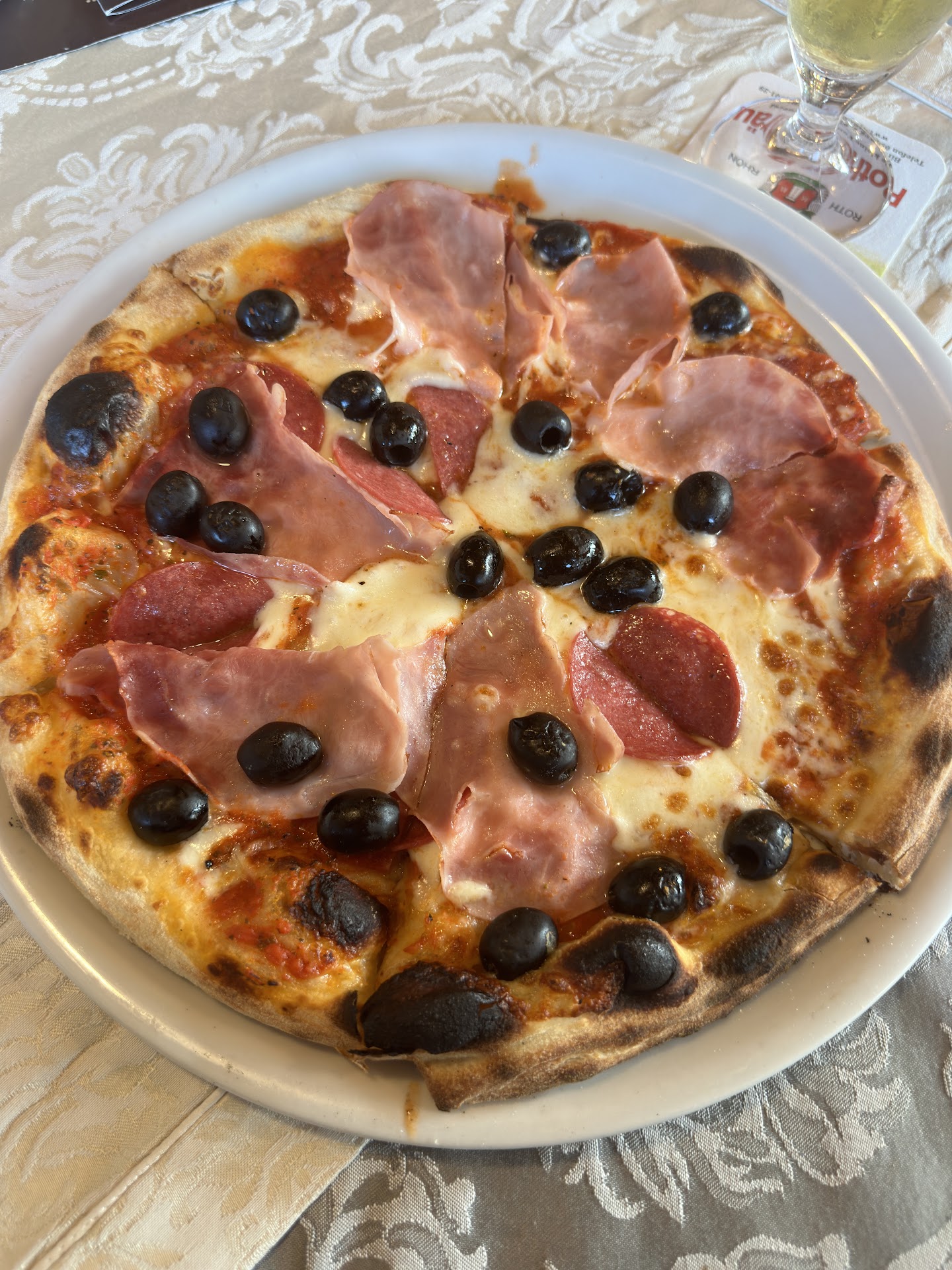 Leider bleibt der 5. Stern fern, da der Service nur nach heftigem Winken an den Tisch kommt und beim Abräumen der anderen Tische gekonnt nach unten sieht. Beim Bezahlen wurden mehrere Tische verwechselt. Aus den Bewertungen ergibt sich, dass das heute kein Einzelfall war. Schade, das müssten Sie doch besser hinbekommen. September 2022 wieder dort gewesen. Leider keine Bedienung mehr im Außenbereich. Alles muss oben im Restaurant bestellt und bezahlt werden und die Getränke dann selbst mit raus genommen werden. Das Essen wird dann aber gebracht, allerdings ohne Besteck: also wieder hoch und selbst holen, während das Essen wartet. Die Pizzen waren geschmacklich wieder super, leider der Teig viel zu hart. Sorry, aber nun muss ich einen Stern abziehen. Ich hoffe, ihn beim nächsten Besuch wieder dazu nehmen zu können.