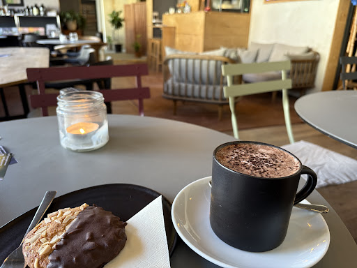 I had a hot chocolate that honestly ranks among the best I’ve ever had — rich, velvety, and topped with just the right amount of cocoa dust. Paired with a handmade cookie, half-dipped in chocolate and sprinkled with almonds, it was the perfect treat. Every bite and sip felt crafted, not just made.
