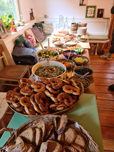 Nun, mich hindert das nicht und auch wenn es sicher vor allem auch jüngere Besucher abzielt, hab ich mich sehr wohl gefühlt. Der Ort hat fast was „magisches“, man kommt richtig schnell „runter“ und fühlt sich sehr gut dort. Die Leute sind supernett und die Preise für die Gegend sehr fair! Es gibt täglich ein bis zwei wechselnde Tagesgerichte, dazu immer fantastische Sandwiches und grandiose Pommes. Ja, lacht ruhig, aber die sind wirklich was besonders, weil hausgemacht, mit Rosmarin und von ungeschälten Kartoffeln. Kein Vergleich zu Gaststättenconvinienceware! Tolle Kuchen und es ist eindeutig auch auf Vegatarier ausgerichtet.