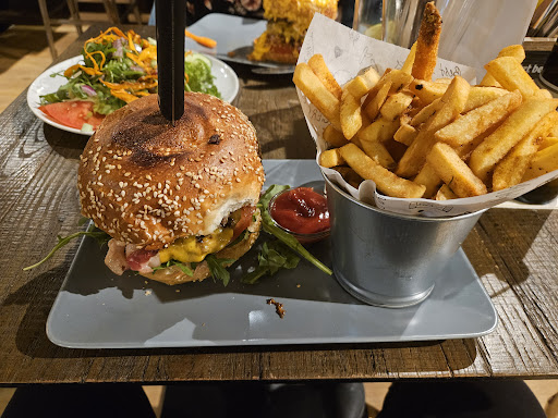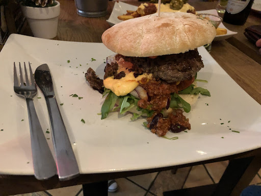 Wir kamen am Samstag 24.5.25 in eurem Lokal an. Nach einem fast komplett verkorksten Start in unseren Wellnesstag in besagtem Hotel waren wir auf der Suche nach etwas das uns satt und glücklich macht. Die Wahl fiel nach kurzer Suche über Google auf euer Restaurant,da wir die überzogenen Preise für mickrige Portionen im Hotel für eine Frechheit empfanden! Der Empfang durch die Kellnerinnen absolut freundlich und bodenständig. Ein kurzer Blick hinter die Theke, es kam zwei Finger mit einem fragenden Blick,ich nickte und schon hatten wir einen Platz. Wir setzten uns und ließen die Atmosphäre einen Moment auf uns wirken. Das Ambiente allein schon war sehr beflügelnd. Etwas Industriecharme durch die Lüftungsanlage gepaart mit rustikalen Hölzern und hohe als auch niedrige Sitzgelegenheiten. Das lockerte die Sache schon auf. Die Bedienungen freundlich,sofort hilfsbereit und jederzeit für einen kleinen Scherz zu haben. Der Inhaber,ein aufgeschlossener,sehr freundlicher Mensch und an seinem reden klar zu erkennen...ein Vollblutgastronom! Immer auf das Wohl jeden einzelnen Gastes bedacht und für ein kurzes Gespräch zu haben. Nun kommen wir aber zum eigentlichen Highlight: DAS ESSEN! Rasul (An. d. Red.) Ist ein wahrer Meister seines Handwerks! Immer wieder hörte man die Bedienungen seinen Namen rufen wenn die Küchenklingel erklang. Ich hatte den Mojo und dazu ein paar Fritten. Was aber nach Langeweile auf dem Teller klingt war ein wahrlich kulinarischer Hochgenuss. Das Bun angeröstet,die Zwiebeln glasig,die Saucen absolut stimmig zu Fleisch und Salat! Apropos Fleisch: ein Burgerpatty so auf den Punkt zu braten wie es der Küchenchef kann ist schon eine echte Glanzleistung! Die Preise dazu sind schon fast unter Wert, der Burger kostete 14,90€ und ich als wirkliche Vernichtungsmaschine was große Portionen angeht war ich danach absolut satt!
