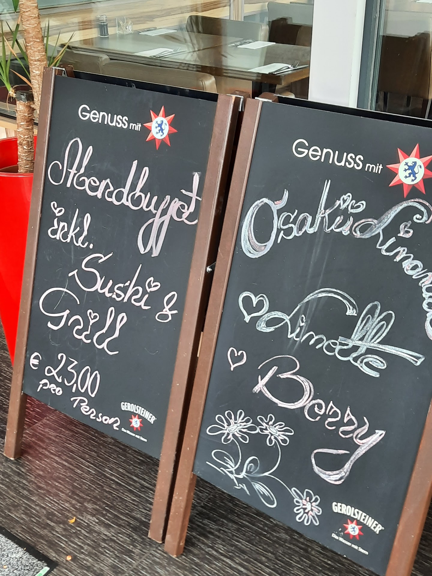 Read moreJuli 2018, es ist einer der heißesten Tage des Jahres… Begrüßung erfolgt schon mal gar keine am Eingang, wir suchen uns selbst einen Platz. Uns fällt gleich auf, dass es gar keine Klimaanlage gibt! Kellner nimmt eher grummelnd als freundlich die Getränkebestellung entgegen. Wir wählen natürlich das Büffet, was uns leider schwer enttäuschte. Das Sushi war warm!!! Ein Unding, gerade bei über 30 Grad draußen … der Rest des Essens vom Büffet war okay. Geschmacklich geht es aber auch definitiv besser. Generell wirkt alles bei näherem hinsehen schon stark mitgenommen, in den Tischen sind Risse und Dellen. Über einem Teil des Büffets fehlte sogar die Decke, sodass man freie Sicht auf die darunter liegende Kabelwelt hatte. Nach kurzer Zeit sind unsere Getränke schon leer, was nicht erstaunt bei der Hitze, leider bleiben die Gläser auch leer. Selbst als der Kellner die leeren Teller wegräumt entgehen ihm unsere leeren Gläser… wir blieben also durstig. Der Knaller aber bei der Bezahlung: da der Kellner kein Trinkgeld von uns bekam, rauschte er beleidigt davon. Er konnte sich noch nicht mal mehr höflicher Weise verabschieden, was meiner Meinung nach im Service zur guten Etikette gehören sollte. Wir verließen den Laden & ärgerten uns wirklich sehr über den schlechten Service und das mittelmäßige Essen. Dafür ist es dort einfach zu teuer, das Servicepersonal sollte seine Einstellung mal etwas überdenken, Unhöflichkeit & Unachtsamkeit führen nun mal dazu dass man mal kein Trinkgeld bekommt. Wir geben sonst immer welches, aber hier die schlechte Arbeit noch belohnen schien uns mehr als unpassend. Hier muss dringend etwas geschehen, wir werden nicht mehr...