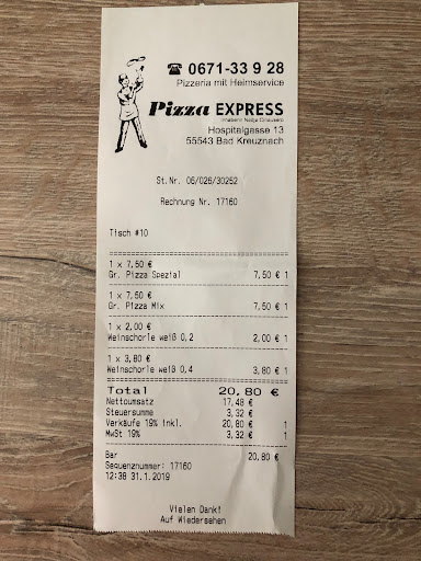 Read moreIch hatte gerade eine Thunfisch Pizza mit Oliven und Zwiebeln. Jeder weiß dass die Pizza im Pizza Express seit fast zwei Jahrzehnten zu den besten Pizzen in Kreuznach zählte. Das war einmal ich war so enttäuscht, der Teig viel zu hart, die Zutaten minderwertig? Das einzige; er war gut gewürzt. Da werde ich nie wieder essen und empfehle es auch nicht weiter. Bin sehr traurig deswegen hatte dort echt gerne gegessen. ...es ist auch nicht mehr das Rezept aus den 70ern. Weeeeiiiiit...