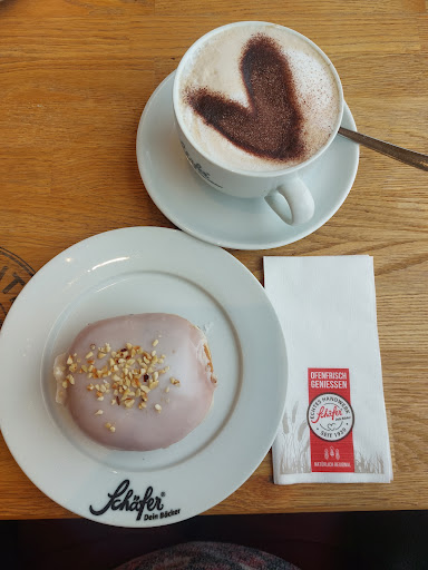 Read moreIch gehe oft zu Schäfer Filialen.Hier sind die Verkäuferinnen,nur die weiblichen wohlgemerkt,oftmals sehr unfreundlich.Sie reden mit einem,als wären sie genervt.Jeder Sonderwunsch,wie z.B. Brötchen mit Butter machen,wird abgelehnt.Anstatt zu fragen,ob man noch einen Wunsch hat,wird gesagt:"nochwas".Kein Lächeln im Gesicht.Und es wird lautstark gestritten über Dienstpläne,Schichten,etc.Hier ist kein Teamverhalten.Ich denke,die meisten möchten nicht in dieser Filiale sein. Die Herren hier sind immer freundlich. Ich mag das schön eingerichtete Cafe. Es ist immer ordentlich und die Toiletten sind immer sauber.Draußen kann man auch sitzen.Es gibt Sonnenschirme.Aber man sitzt,wie bei fast allen Schäfern, quasi auf dem Parkplatz.Es gibt für mich zu wenig Auswahl an Kaffeestückchen,wie auch belegten Brötchen.Die meisten Brötchen sind mit Remoulade bestrichen.Es wird ein kleiner Klecks in die Mitte gemacht und nicht verstrichen.Die Menge an Käsescheiben,Salamischeiben etc ist sehr gut. Ich wünsche mir ein paar andere Kaffeestückchen. Für 1 belegtes Camembertbrötchen (3,70Euro) und einen kleinen Kaffee habe ich...