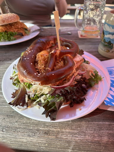 Read moreDer Service war freundlich aber obwohl nur 3 Tische besetzt waren, hat unser Essen über eine Stunde gedauert und kam erst auf Nachfrage. Wollte man Getränke nachbestellen, musste man auch selbst aktiv werden, gefragt wurde nicht. Mein Essen, der Gaudiburger war nicht schlecht, es war lediglich zuviel (aber das ist subjektiv) Krautsalat darauf. Die Weißwurst meiner Freundin (3 statt 2) kam nicht, wie üblich, im Kochwasser, sondern von einem Holzspieß zusammengehalten auf einem Holzbrett, was zwar dekorativ aussah, aber dafür sorgte, dass die Wurst auf dem Weg von der Küche nach draußen abkühlte. Wir machten freundlich darauf aufmerksam und bekamen ebenso freundlich zu hören, dass sich noch niemand beschwert hätte und man auch nicht wüsste, wie man das Problem lösen solle. Mein Fazit: Für ein, zwei Bier evtl. mit Brezn dazu ist der Biergarten mit seinen rustikalen Garnituren im Grünen...