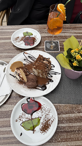 Read moreAls erstes wurde ich gleich zu Beginn unfreundlich vom Kellner angehalten, doch mein Kind aus dem Weg zu räumen, welches drauf wartete, dass ich die Jacke ausziehe. Der überhebliche Kellner nahm unsere Bestellung auf, auf welche wir dann 50 Minuten warten mussten. Kann schon mal passieren bei 3 Kaffee, 2 Eisbecher sowie ein Kinder Micky Maus Becher. Als unsere Bestellung dann endlich kam, fehlte der Kinderbecher, worauf unsere 22monatige kleine Maus eigentlich gewartet hatte. Sie durfte bei Papa mit Löffeln. Auf Nachfrage, war dem Kellner keine Schuld bewusst, ich bestellte den Eisbecher wieder ab, denn unsere Geduld war am Ende. Keine Entschuldigung nur "Italienisches arrogantes" Getue.....und auf der Rechnung war dann auch noch ein dritter Eisbecher, den wir gar nicht bestellt haben. Wir sollen es einfach streichen, zum abkassieren kam der Kellner dann auch nicht mehr, woraufhin wir das Geld auf den Tisch legten. Voll gestelltes Restaurant welches dringend einer Restaurierung und stillvollen Einrichtung bedarf. Schade das allein ein Angestellter alles kaputt machen kann. Wir besuchen es nicht wieder ! Familienfreundlich...