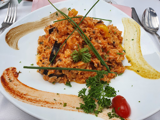 Read moreWenn ich im Wintergarten sitze und dauernd geht ein Kellner raus und die Tür klatscht laut zu, dann nervt es nach dem zweiten mal. Der Wintergarten selbst hat auch schon bessere Tage gesehen, die Glasscheiben oben voller unansehnlicher grüner Algen, das Mobiliar zum Teil abgenutzt. Für den Preis und den Anspruch kann ich mehr erwarten, das Auge ist mit. Und wenn das Ambiente schon nicht stimmt...so what!! Kellner waren sehr bemüht, freundlich aber auch überfordert. Mit Glutenfreiem Essen war man komplett überfordert. Sauce Hollandaise zum Spargel kam aus dem Tetra Pack und nicht Glutenfrei, diese kann man frisch im Thermomix in gut 8 Minuten selbst herstellen, wenn man denn will und kann. Steak in der Karte gibt's mit Nudeln! In welchem Universum serviert man ein Rindersteak denn bitte mit Nudeln? Die Karte besteht, wie bei Italienern üblich, aus 200 Gerichten. Was soll sowas? Aber wirklich lecker war das Steak mit Sauce Hollandaise und Spargel nicht, der Spargel lecker, Sauce Hollandaise nicht Glutenfrei, Rindersteak im "italienischen Koch Stil"! Der einzige Lichtblick war der Wein, dafür gibt's volle Punkte. Am Rest muss gearbeitet werden. Wenn ich Gerichte anbiete bei denen gekocht werden muss, erwarte ich dieselbe Qualität wie bei Pizza und Nudelgerichten wo Kochkunst nicht wirklich von Bedeutung ist. Daher nur 3 Sterne für's "Kochen" und Ambiente! Für das Geld rund 300€, haben wir/ich schon mit wesentlich besserem Essen, ruhiger, mit erfahrenem Service und gepflegtem...