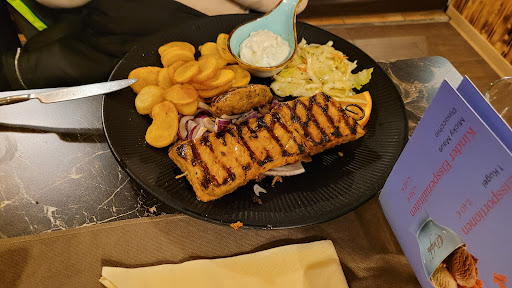Der Salat von 3 Tellern wurde zum Schluss nicht mit eingepackt, der erste Ouzo war halb Wasser, der Salat in Essig getränkt, das Souflaki mit dem Butterbrotmesser kaum schneidbar und zäh, das Gyros war mehr Zwiebel als Gyros, die Bratkartoffeln nicht gebraten, das Zaziki mehr Joghurt und zu wenig, der Käse auf den Delphikartoffeln verbrannt und das Mini-Bifteki und die Metaxasoße schmeckten ausschließlich nach Paprika. Garniert wurde das Ganze dann noch mit einer getrockneten Kräuterbrise. 👎