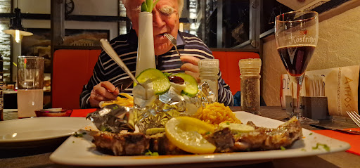 Read moreSehr netter und aufmerksamer Service. Das Essen kam sehr schnell, nachdem Salat als Vorspeise serviert wurde. Der Salat war gut und frisch, aber keine Offenbarung. Das servierte als Extra bestellte Tzaziki war sehr schmackhaft und gut gewürzt, allerdings für den aufgerufenen Preis von 5,50 Euro eine etwas dürftige Portion! Etwas mehr täte gut,....Leute, es ist Yoghurt!!!! Der Hauptgang (Helios-Platte) war leider auf einem kalten Teller serviert! Der Tomatenreis war fast kalt, der gesamte Hauptgang nur lauwarm. Die pikante Tomatensauce schmeckte wie eine etwas zu wässrige Version einer Tex-Mex-Sauce aus der Flasche....ebenfalls nur lauwarm! Das könnt ihr doch besser!!! 😉 Wenn das Essen, welches qualitativ stimmig war, noch heiß und auf gewärmten Tellern serviert würde, ist auch der 5te Stern in Reichweite! Wir kommen dennoch gerne wieder und probieren auch gerne die anderen...