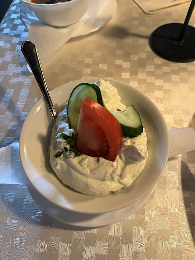 Nachdem wir dann die Speisekarte hatten und uns je ein Gericht ausgesucht hatten fragte ich nach ob das Gyros vom Drehspieß ist oder aus der Pfanne, auf diese Frage bekam ich eine schnippische Antwort das "seine Mutter" täglich frisch zubereitet, nach erneuter Frage wurde dann gesagt das es vom Spieß ist (was dann auch so war). Auf meine Frage ob ich Zaziki dazu möchte habe ich gesagt, gerne ein wenig dazu (ACHTUNG - wird mit 5.- Euro extra dazu berechnet), jedoch wurde nicht erwähnt das dies extra kostet, bei einem Gyros von schon 18.- Euro (sehr überschaubar) dazu noch schon fast kalte Pommes! Der Salat vorweg war bis auf den Krautsalat nicht zu geniesen, Salatsoße war nicht zu definieren und eine 1/4 Tomate, 2 Scheiben Gurken und geraspelten rote Beete. Der Schafkäse in Öl welches aus dem Ofen kommen sollte war mit Sicherheit unter dem Salamander da dieser nur oben angebräunt war, dazu die noch zwischen dem Schafkäse gelegten Tomaten ebenfalls kühl waren. Das dazu gereichte Baguett war auch schon länger gebacken bzw. fertig gekauft (ich arbeite selbst in einem Lokal und weiß wie Baguett bebacken wird und auch frisch schmeckt).