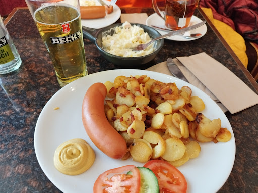 Byłem w tym miejscu w ubiegły weekend. Niestety nie mogę podzielić pozytywnych opinii dotyczących tego lokalu. Zamówiłem kiełbaskę z pieczonymi ziemniakami. Kiełbasa to w zasadzie gruba parówka, ziemniaki ociekające tłuszczem, co poskutkowało u mnie rozstrojem żołądka. Malo uprzejma obsługa- dwie starsze Niemki, które nie ogarniały zamówień. Myślałem że niechęć do Polaków to tylko stereotyp, ale chyba nie w tym miejscu. Obsługa jest bardzo grubiańska w stosunku do Polaków, ale gdy przyjdą do Polski oczekują iście królewskiej obsługi.Klimat jak z czasów NRD. Niestety w Bad Muskau w rynku trudno znaleźć inną miejscówkę, gdzie można coś zjeść i przy tym przyjmują płatności kartą. W sąsiedztwie w innych nielicznych lokalach przyjmują płatności...