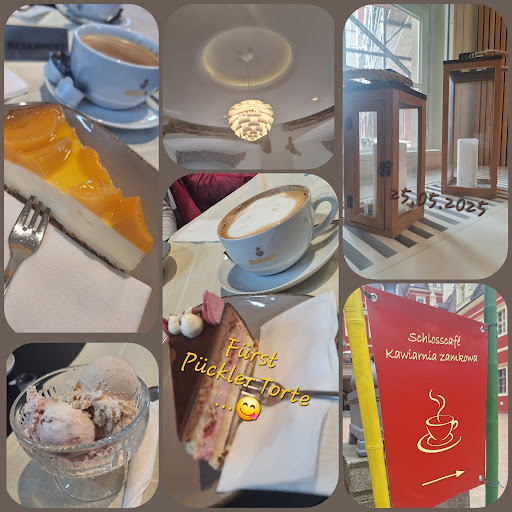 Das Kuchen Buffet war leider schon sehr geleert... es kam sehr optisch ansprechende und auch geschmacklich hervorragende Sorten an Torten, da Neu in die Auslage. Fürst Pückler Torte Quark/ Mandarine Torte ...diese Sorten hatten Wir bestellt, für uns hervorragende Quantität auch sehr schmackhaft .... 😉👍🍰☕️ Eissorten 🍨 nach Karte bestellt geschmacklich sehr gut. Tolles Ambiente, im Schloss Cafe aber gerade zur Stoßzeit...etwas hektischer und lauter im Gastraum.. SCHADE DAS BARGELDLOSES ZAHLEN NICHT MÖGLICH IST.