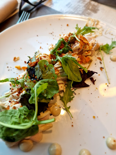 Read moreDieses Lokal liegt direkt an den TennisplĂ€tzen von Bad Nauheim/also direkt auch am Kurpark. Wunderschöne Lage! Im Sommer direkt aussen PlĂ€tze und schicke Bartheke! Innen: nicht arg so viel PlĂ€tze, ca. 30-40. Unbedingt reservieren! Wir waren So-Mittag fĂŒr Mittagessen da. Eine super aufmerksame Bedienung (Kellner) mit absolut perfekten Manieren. Er reichte die Speisekarte zuerst der Tisch-Ăltesten, meiner Mutter, nĂ€mlich dem Familienoberhaupt. So gehört sich dies auch. Hier werden Respekt, Höflichkeit und Aufmerksamkeit dem Gast gegenĂŒber noch ernst genommen - und nicht wie oft anderswo flapsig gehandhabt. Hier wurde nicht nur im Service, sondern auch beim Essen selbst (Zubereitung, Geschmack, PrĂ€sentation) auf jeden Kleinigkeit geachtet. Detailgetreu ist auch die Deko und die geschmackvolle Einrichtung. Moderne und GemĂŒtlichkeit wird hier stilvoll miteinander in Einklang gebracht, mit einem leichten Vintage-Touch. Die Weinecke mit ausgefallenen Sitzmöbeln ist ein weiterer Hingucker. Wir hatten Pinsa gegessen. Dies ist ein Pizza Ă€hnliches Gericht. Der Teig geht lĂ€nger (72 Std.) und ist ein Sauerteig. Sehr bekömmlich! Ich hatte zum ersten Mal nach Pizza Essen (weil: ist ja wie Pizza) keinen Klumpen im Bauch. Es liegen gerollte Stoffservietten bereit und es steht Tafelwasser auf den Tischen in dekorativen blauen Flaschen sowie TrinkglĂ€ser. So kann man gleich einen Schluck Wasser trinken, ohne ĂŒberhaupt bestellt zu haben. Man fĂŒhlt sich sehr willkommen! Saubere moderne Toiletten, wir speziell fĂŒr die Damen mitgedacht wurde. Es liegen Binden und Handcreme in der Toilette bereit, die ĂŒbrigens auch nett dekoriert ist. Ein super Restaurant! Hier wurde alles richtig gemacht ! 100 Mal 100 Punkte...Wir kommen wieder, wenn auch etwas gehobener im Preis dort ist - aber das war es wert, allemal. FĂŒnf...