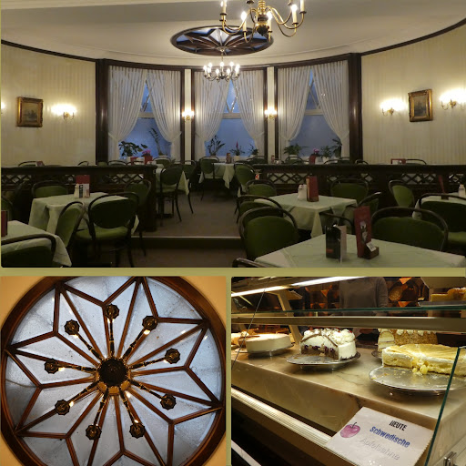 Read moreDie Torten, Kuchen und anderen Konditoreiwaren sind hier fünf Sterne wert. Die etwas altmodische Cafehauseinrichtung und - atmosphäre hat ihren Reiz und darf von mir aus gerne so bleiben. Auch der Kaffee ist gut und passt damit perfekt zu den Torten. Der Tee mag für hessische Verhältnisse noch angehen, wenn man aber gerade seinen Urlaub in Ostfriesland verbracht hat, dann kann der Markenteebeutel im dickwandigen Becher da nicht mithalten (und was war das weiße im Sahnekännchen? 3,5 %-Trinkmilch oder fettarme Sahne?) Auch ein eher traditionelles Frühstücksbüffett gibt es hier. Soweit ich das immer mal sehe, ohne raffinierten Schnickschnack, aber durchaus ok. Meine Frau schwört auf den Cafe Müller-Bienenstich. Der ist auch gut, lässt sich nur etwas schwierig mit der Gabel zerkleinern, wegen der sehr gut auskaramellisierten Deckschicht und der eher weichen Sahnecreme darunter. Diese Herausforderung gilt es zu meistern, will man hier den leckeren...