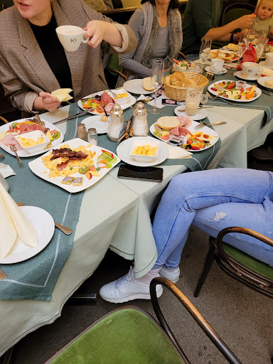 Ich muss sagen wir waren doch etwas enttäuscht. Wir waren an einem Sonntag da, es war schönes Wetter und sowohl draußen als auch drin waren die Tische gut besucht. Die Einrichtung ist gemütlich und eher im traditionellen Stil mit Holzvertäfelung aus dunklem Holz und Bildern mit Goldrahmen an der Wand gehalten. Das einzige was man hier bemängeln könnte, sind die extrem kleinen Tische. Es stehen 3-4 Stühle um einen Tisch, aber der Tisch ist sogar für 2 Leute mit Frühstück zu klein. Das Frühstück war "uninspiriert". Ganz normaler Standard, keine interessante Kombi oder ein paar interessante Zutaten, sondern Frühstücks"kompositionen", die man in jedem Kaffee sieht. Kein englisches oder amerikanisches Frühstück, nur Standardware. Rein qualitativ gibt es wenig auszusetzen, aber auch nichts hervorzuheben. Standardware, nicht mehr, nicht weniger. Wo leider das Management komplett versagt hat, ist eine richtige Personalplanung. Ich kann nicht 15 Tische draußen und 15 drinnen mit 2 Bedienungen abdecken. Wir saßen 15min an unserem Platz, bevor eine der Bedienungen auf uns aufmerksam wurde, obwohl sie uns beim Reinkommen zum Tisch geleitet hatte. Zwischendurch war es schwer, die Aufmerksamkeit der Bedienungen zu erhaschen. Eine weitere halbe Stunde verging, bis wir unsere Frühstück hatten. Was aber gar nicht mehr ging war der Zeitpunkt, an dem wir zahlen wollten. Erstmal konnten wir nur bar bezahlen, was uns doch in Anbetracht der ausklingenden "Pandemie" sehr überrascht hat und das Ganze hat auch mehr als 20min gedauert, bis wir die Rechnung hatten. Danach kam dann keiner mehr. Wir warteten erneut 20min, machten mehrmals auf uns aufmerksam, bis wir dann genug hatten, aufgestanden sind und das Geld auf den Tresen der Kuchentheke gelegt haben. Ich will nicht spekulieren, vielleicht war einfach mehr los als geplant, oder durch die Pandemie war es schwer neue Leute zu finden, aber wenn die Besitzer des Cafes hiermit noch mehr Gewinn raus holen wollen, durch das Einsparen an Personal, dann befürchte ich, wird das früher oder später nach hinten losgehen. In Anbetracht der sehr durchschnittlichen Qualität und der unzureichenden Ausstattung mit Personal, würden wir nicht nochmal...