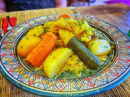 Es hat uns sehr geschmeckt. Schön auch diese Küche in näherer Umgebung genießen zu dürfen. Das Interieur ist schlicht, aber gepflegt. Bedienung sowie Chef sind sehr freundlich und zuvorkommend. Das Essen ist schmackhaft und die Auswahl gut. Der Salat war knackig und frisch, das Dressing sehr schmackhaft. Das Hummus war eine üppige Portion und ausgezeichnet gewürzt. Das Brot war frisch und wurde warm serviert – absoluter Pluspunkt. Auch wurde weder daran gespart noch war es ein Problem selbiges nachzubekommen. Das Couscous für zwei war schmackhaft und authentisch. Die Tajine hatte auch sehr gefallen, wunderbar gewürzt und schmackhaft. Zum Nachtisch hatten wir den Nusskuchen – eine Kalorienbombe, aber eine, die es wert ist. Ganz toll. Auch der Tee für zwei war mehr als großzügig bemessen und mit frischer Minze zubereitet. Obwohl wir bis in die Mittagspause hinein gesessen hatten, hatten wir zu keiner Zeit das Gefühl unwillkommen zu sein oder bedrängt zu werden, zu gehen. Sehr angenehm, wir kommen...