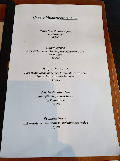 Read moreSeit ich dieses Jahr das erste Mal das Café /Restaurant Residenz hier in Bad Neuenahr besucht habe, komme ich mehrmals Wöchentlich zum Essen oder zum Entspannen bei einer Tasse Kaffee sehr gerne hierher. Egal ob man eine der vielen leckeren Salat-Variationen oder eine der vielen Flammkuchen Varianten bestellt, alles ist Top!! Die überaus nette Freundlichkeit des ganzen Personal's einschließlich der perfekten Sauberkeit, egal ob an den Tischen draußen oder im Restaurant bis hin zu den Toiletten, sucht seines gleichen. Von mir bekommt der Inhaber ehrliche 5 Sterne!! Wenn man guten Freunden etwas diesbezügliches gutes Empfehlen möchte, ohne das man sich später irgendwelche Reklamationen anhören muss, kann ich dieses Cafe/Restaurant bestens weiterempfehlen....