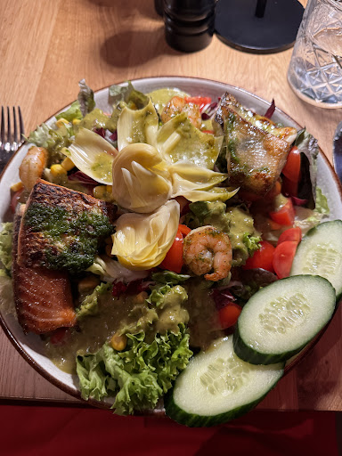 Das größte Manko, was ich erwähnen möchte, ist allerdings die Wartezeit aufs Essen gewesen. Wir hatten den Zeitslot von 17.30-20 Uhr gebucht. Unsere Bestellung wurde erst nach 18 Uhr aufgenommen - auch die Getränke. Diese kamen recht flott, dafür haben wir dann 20 Minuten auf die Vorspeise gewartet. Erst fast 50 Minuten später (ca. 19.10 Uhr) kam dann unser Essen. Das war eine sehr lange Zeitspanne. Vor allem fühlte es sich fast schon gehetzt an, weil man nach dem Essen nicht viel Zeit hatte entspannt noch etwas zu trinken und in Ruhe einen Nachtisch zu schnabulieren. Das haben wir zwar gemacht, war allerdings auch alles ziemlich gequetscht in den letzten 20 Minütchen. Daher gibts einen Stern Abzug. Daran sollte noch etwas...