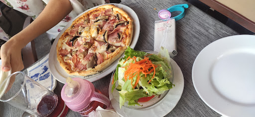 Read moreMeine Enkelin und ich haben am Montag den 30.4. Essen dort bestellt und mitgenommen! Positive war das die Leute dort sehr nett sind, leider war es das schon! Ich hatte eine Gyros Pizza ohne Knoblauch bestellt, dazu eine Schinkenpizza, eine Pizza Schinken/Salami, zweimal Fisch mit Pommes aber bitte alles ohne Knoblauch oder Zaziki, was ich dem Kellner sagte!!! Nach 25 min. kam das Essen allerdings fehlte einmal der Fisch, was ich an der Rechnung bemerkte! Man entschuldigte sich und machte den Fisch nach, endlich nach zwanzig Minuten bekamen wir auch den fehlenden Fisch und fuhren zu unsere hungrige Meute! Daheim angekommen wurden die Gesichter sehr lang, Gyros Pizza die ohne Knoblauch bestellt wurde, war ein Knoblauchdesaster, Schinkenpizza gab es keine sondern zweimal Schinken-Salami, und beim Fisch war Zaziki dabei! Gyros Pizza landete in die Mülltonne, mein Mann hat ein Brot gegessen, der Fisch mit Calamari war absolut auch kein Burner, waren einfach nur enttäuscht! Können wir...