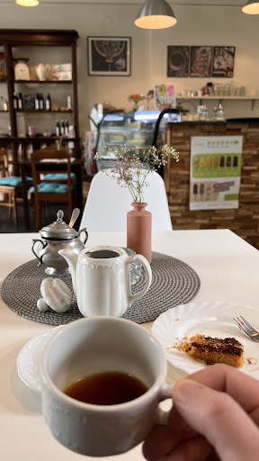 Meine Erwartungen sind immer hoch, wenn ich mir was gutes tun möchte. Zugegeben. Es ist sehr beeindruckend wie man mit so wenig, so viel erreichen kann. Es kann so einfach sein. Der Laden ist klein, unorganisiert, unaufgeräumt, unrenoviert, es ragen an manchen Stellen offene Kabel in die Luft, das Inventar total in die Jahre gekommen... Aber immer voll!!! Hier fühlt man sich wohl , wenn man es okay findet Dinge einfach mal so zu lassen, no stress. Der Kuchen und der Kaffee ist gut, aber haut mich nicht vom Hocker, ich ernähre mich nicht vegan und vertrage auch Alles was mir auf die Gabel kommt. Ein veganer Kuchen kann bei mir nicht punkten. Eine Tasse Fiterkaffe für 5, 20 Euro auch nicht. Das Personal war zwar freundlich aber sehr unaufmerksam. 3 Damen wuselten vor sich hin, während ein liebenswertes junges Mädchen an die Tische brachte was die anderen 3 bereitstellen. Niemand hielt es für notwendig mir die Tages Zeit zu nennen, oder wenigstens ein Hallo. Ich schaffte es 3 mal die Aufmerksamkeit zu gewinnen, meine Frage wurde halbwegs beantwortet und weitergemacht. Ohne das ich danach wirklich bescheid wusste was ich zu welchem Preis bekomme. Da ich mir zu helfen weiß konnte ich zu guter letzt noch meine Kaffeepause mit Kaffee und Kuchen abschließen. Als Gastgewerbliche Fachkraft empfinde ich immer Mitleid für so eine Arbeitsweise.Das soll doch auch etwas Spass machen! Ich schätze die Nachhaltigkeit , guten Kaffee und irgendwie auch die heimische Atmosphäre dort. Wie bei Omi. Darum immerhin 3 Sternchen. Ich gehöre nicht in die angesprochenen Zielgruppe. Dem Team wünsche ich viel Erfolg weiterhin. Man kann es nicht Allen...