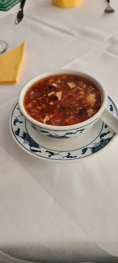 Wir hatten einen Tisch für 3 Personen reserviert. Der leicht zu findende, gebührenpflichtige Parkplatz, lag unmittelbar neben dem einfach eingerichteten Restaurant. Ein gebührenfreier Parkplatz war in angemessener Entfernung nicht zu erreichen. Der sauber mit leichtem Besteck gedeckte Tisch bot für 3 kleine, sehr schlanke Personen noch bequem Platz. Das Personal empfing uns freundlich und professionell. Die Speisekarte war üppig und hielt für jeden Geschmack etwas bereit. Wir bestellten chinesisches Bier, Huhn mit Champignons, Ente mit Erdnusssauce im Feuertopf, sowie Ente mit Currysauce im Feuertopf. Das eiskalt servierte Bier schmeckte säuerlich erfrischend, konnte aufgrund seiner Temperatur nicht optimal mit dem dicken Fettrand der bissfesten, im Feuertopf angekochten Entenstücke harmonieren.